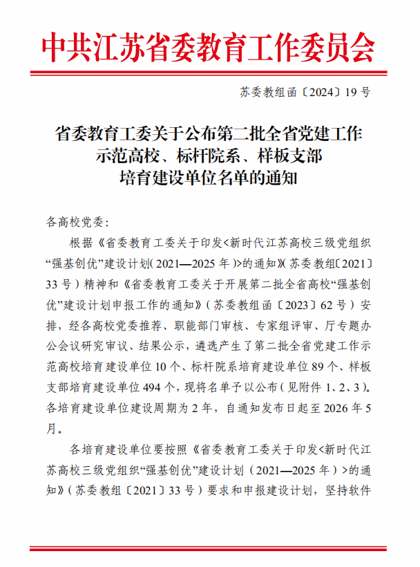 公司党委获批第二批全省党建工作标杆院系培育建设单位