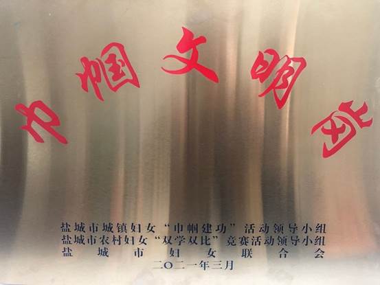 近日,盐城市城镇妇女“巾帼建功”活动领导小组、盐城市农村妇女“双学双比”竞赛活动领导小组、盐城市妇女联合会公布2019-2020年度盐城市城乡妇女岗位建功先进集体的评比结果,公司员工工作办公室被评为盐城市巾帼文明岗。