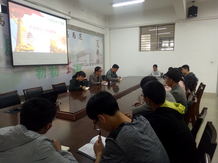 4月25日下午,学院召开“入党初衷大家谈”主题座谈会,本次座谈会由党委副书记江滔主持,党委书记谢毅敏、学工办主任赵迎华及全体员工党员参加。