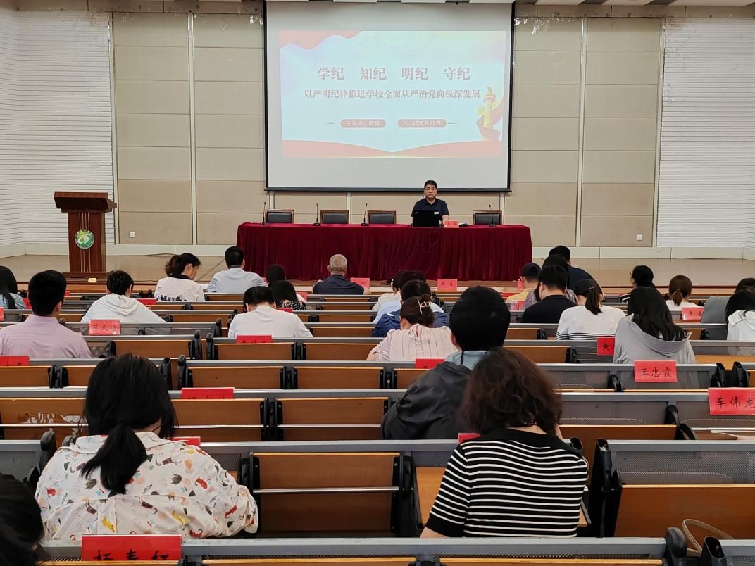 为深入学习贯彻习近平总书记关于全面加强党的纪律建设的重要论述精神,推动党纪学习教育走深走实,6月19日下午,william威廉亚洲官方在北校区化工楼报告厅开展党纪学习教育专题党课。公司党委书记庞辉主讲,全体教职工参加。
