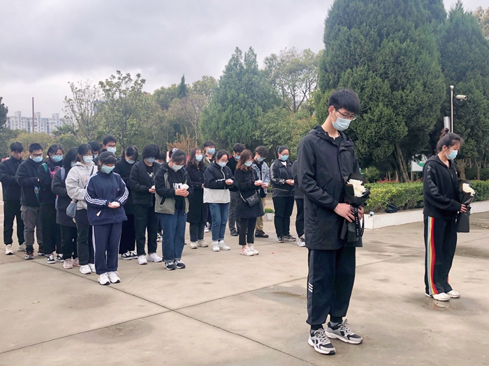 活动组织者、B化工192班张伟是盐城本地人,他说盐城有很多革命烈士,从小到大每逢清明节扫墓,都会听老师讲革命烈士的故事,他们的精神伴随着他长大。张伟还向大家介绍了潘黄烈士陵园的历史由来,讲述了潘克、黄炜的烈士事迹,真诚而朴实的话语感动了现场的师生。