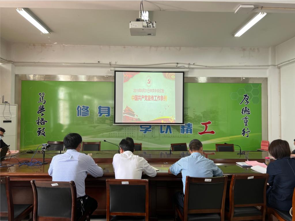 副经理祁刚领学《中国共产党宣传工作条例》。他指出,《中国共产党宣传工作条例》为我们宣传工作提供了基本遵循,学院要贯彻学习,着力推动宣传思想工作开创新局面。他希望,学院各级党组织要充分利用“学习强国”等平台加强理论学习,全面提升思想认识,在比学赶超的浓厚氛围中提高政治站位,着力增强“四个意识”,不断坚定“四个自信”,坚决做到“两个维护”。他强调,对照《中国共产党宣传工作条例》“坚持正确政治方向,舆论导向,价值取向,把握好时度效,唱响主旋律,弘扬正能量”的要求,学院要加强正面宣传和舆论引导,着力强化学院网络阵地建设和网络传播平台的管理。