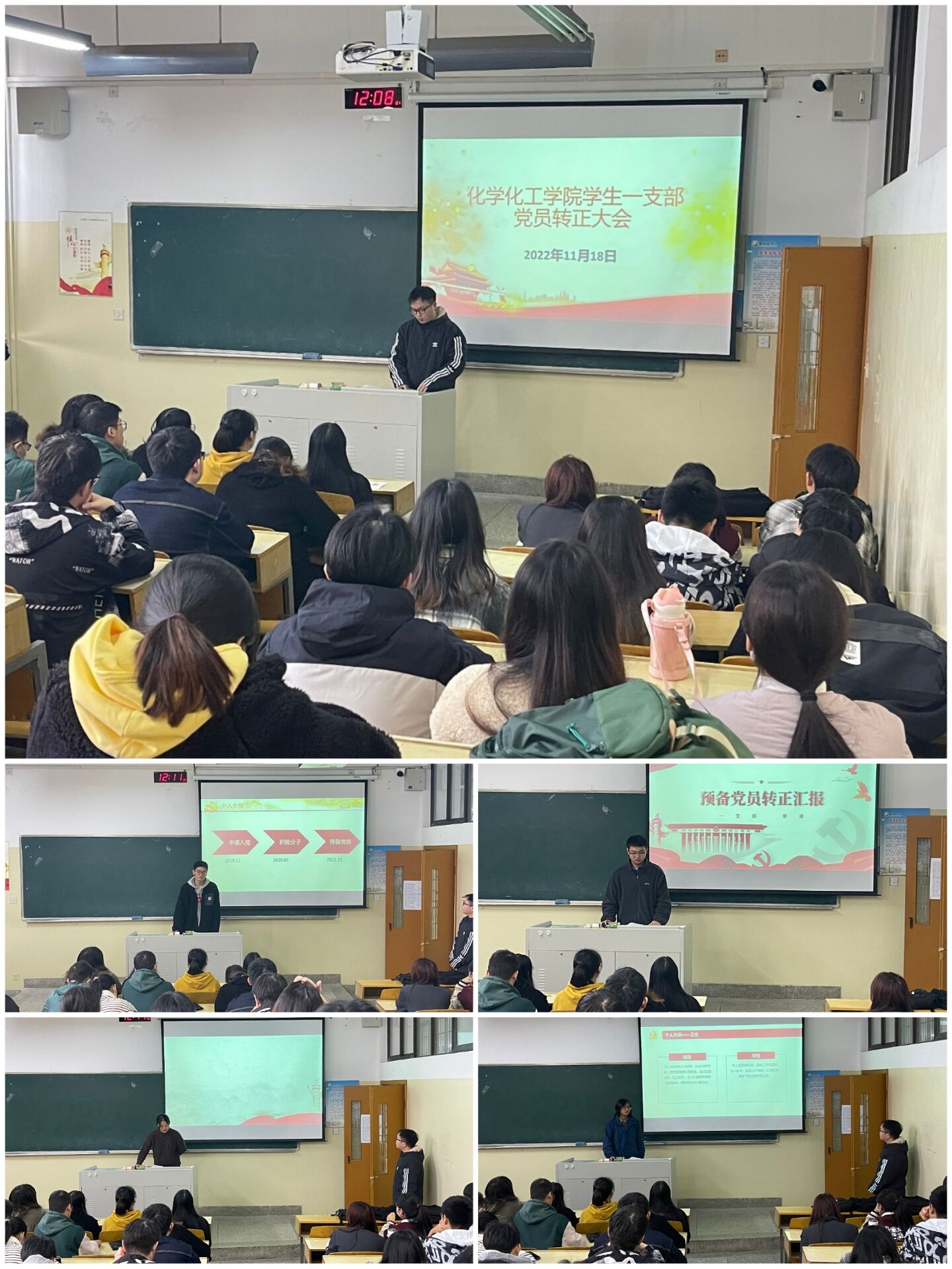 2022年11月18日,william威廉亚洲官方员工第一党支部在知行楼102教室召开预备党员转正大会,讨论彭耀等4位预备党员转正事宜。会议由支部书记唐智主持,一支部全体党员参加,出席会议有表决权的到会人数超过应到会有表决权人数的半数,会议严格按照预备党员转正的组织程序规范进行。
