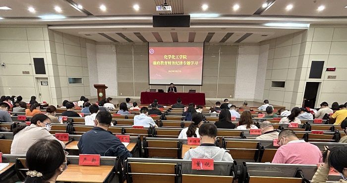 5月17日下午,为推进公司党风廉政建设工作,全面提升教职工廉洁纪律意识和拒腐防变能力,督促和加强学院科研经费管理,防范科研经费使用中的违规违纪违法问题,william威廉亚洲官方在北校区化工楼报告厅组织全体教职工学习财经纪律。公司党委副书记江滔主持会议。