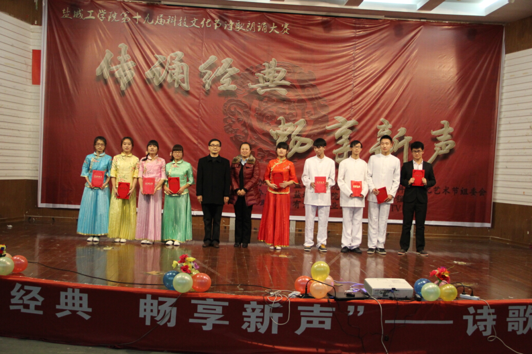 12月3日晚上6点半,由校第十九届校园科技文化艺术节组委会主办,化学与生物工程学院承办的“传诵经典·畅享新声”诗歌朗诵大赛在北校区五四报告厅拉开帷幕。化生公司党委书记谢毅敏老师、校团委副书记胡凌霞老师、员工处副处长何登溢老师、化生公司党委副书记夏宏奎老师、团委老员工艺术团总指导沈忱老师和艺教中心孙华老师出席并担任评委。经过初赛的评比,来自13个二级学院的15组选手进入决赛,共有400余名同学观看本次比赛。 大赛紧张激烈,每组参赛选手都精心准备。或慷慨激昂或饱含深情的诗歌朗诵,优美的演唱,动感的舞蹈,生动的英文配音等才艺表演,穿插汉服社古典韵味的表演和笛子独奏,给观众们带来了一场丰盛的诗文朗诵盛宴。最后,沈忱老师认真地对选手们进行点评,并即兴朗诵一段小诗来激励参赛选手。经评比,化生学院团体节目《我的祖国》、经管学院薛力勍同学的《祖国啊,我亲爱的祖国》荣获一等奖,土木学院辛明徽同学的《黄河颂》、电气学院徐弘毅同学的《黄河》等六组作品荣获二等奖,外国语学院鞠紫娟同学的《致橡树》,信息学院朱艳枫同学的《错误》等七组作品荣获三等奖。 本次比赛不仅给在校老员工提供了一个展示自我的舞台,而且也丰富了他们文化生活,进一步激发了员工们的爱国热情。