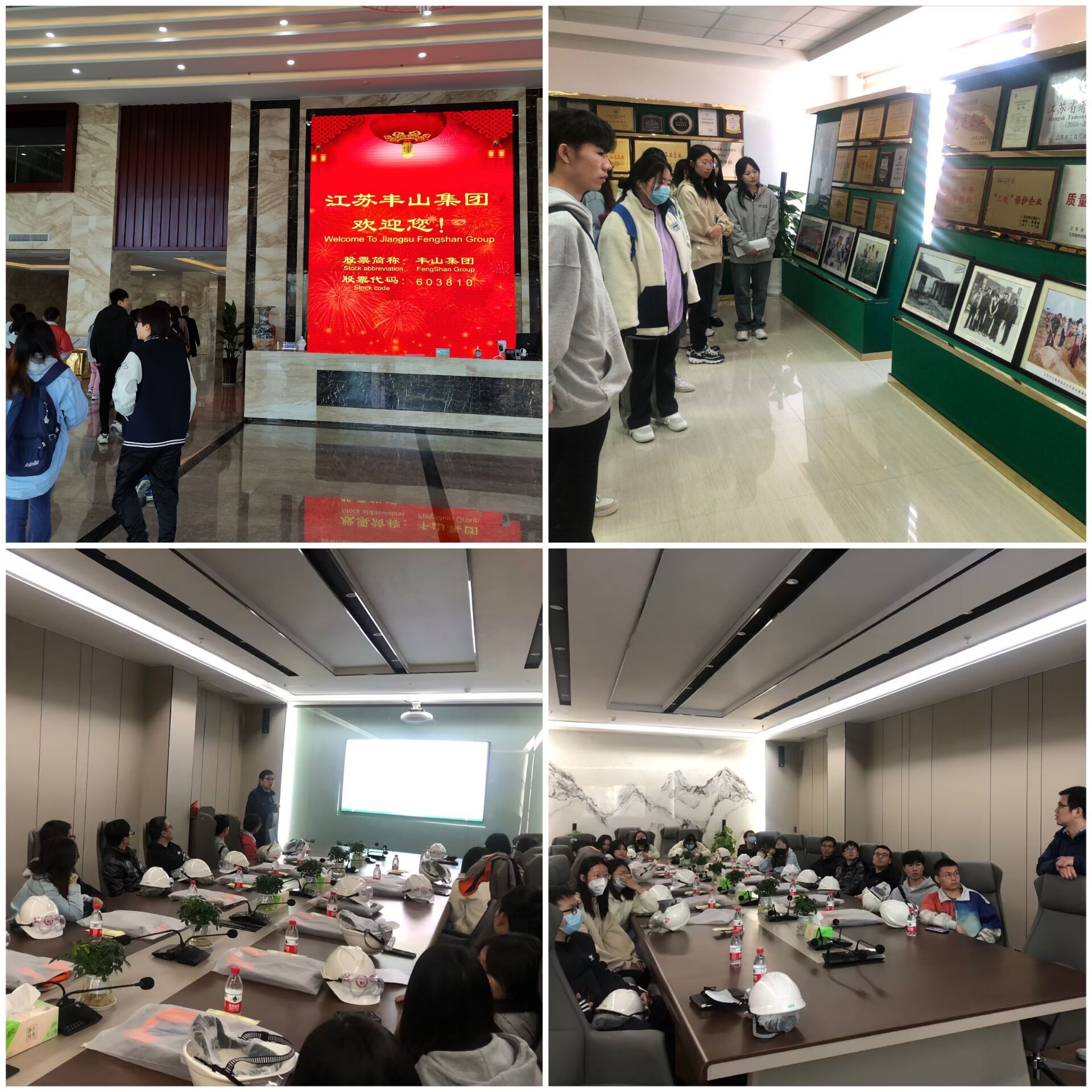 本次就业帮扶活动由学院领导和大丰丰山集团人事部经理对接,学院专门安排专车把有就业意向的优质毕业生送往丰山集团进行参观。在丰山集团人事部经理的接待下,各位毕业生参观丰山集团荣誉室,见证了丰山集团辉煌的发展历程。随后,在企业工作人员的带领下,实地参观丰山集团的厂区,毕业生们一一参观了研发部、总控室和库房等地方。最后在接待室由人事部副总经理进行企业招聘宣讲,毕业生们纷纷表达了就业意向。
