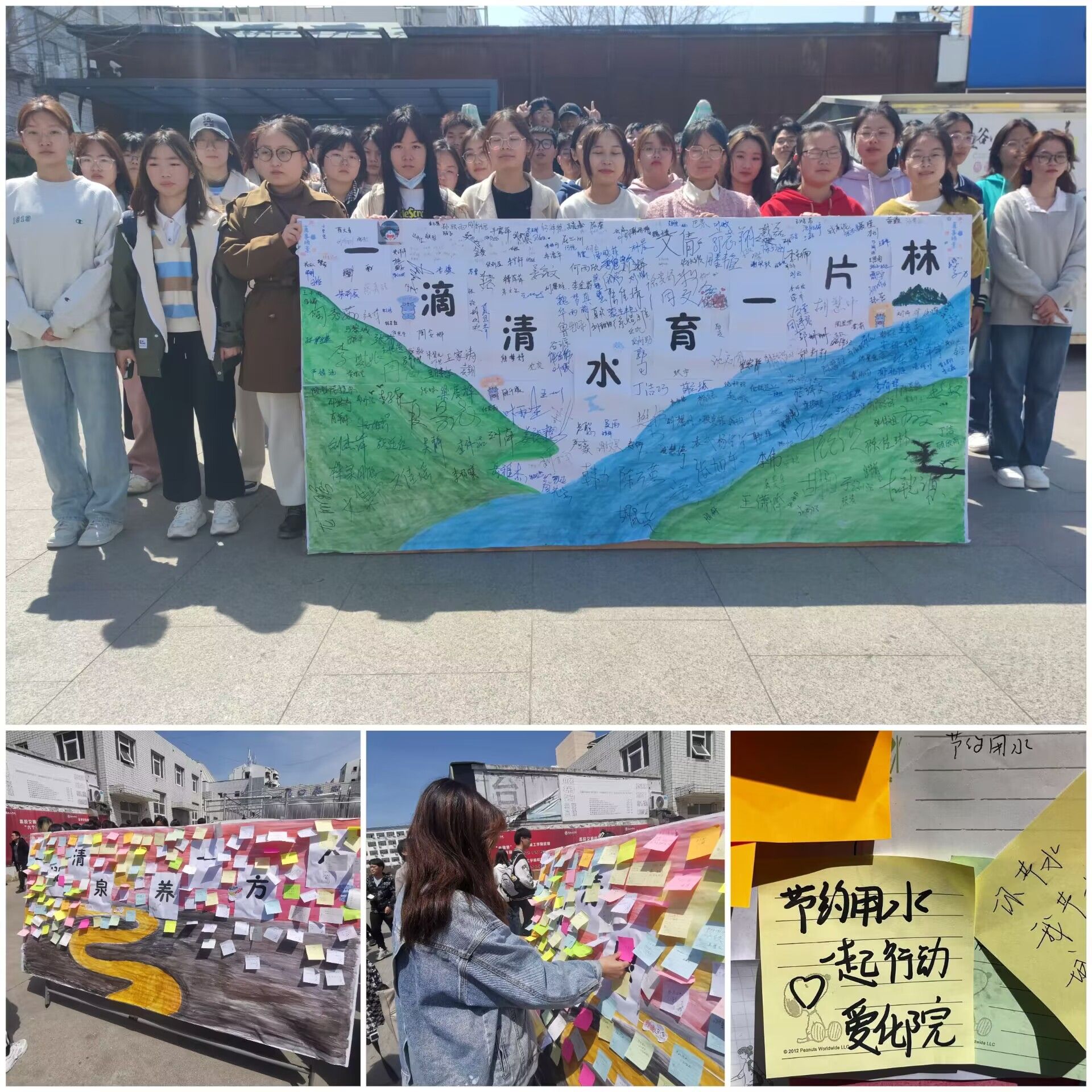 团委干事们向路过的同学们分享“中国水周”,并鼓励他们用便利贴写下有关节水的语句或者自己的想法及姓名,张贴在开水房前两块精美的画板上,提升爱水、惜水、节水的意识,为保护水资源尽一份力。B应化221班犹慧婷同学表示“水对人类的意义是无法估量的,是人类生命的基础和维持生命必需的物质之一。没有水,我们将无法维持正常的生命活动,更无法实现任何生产和发展。通过这次活动,我理解到节水、治水的重要性。”