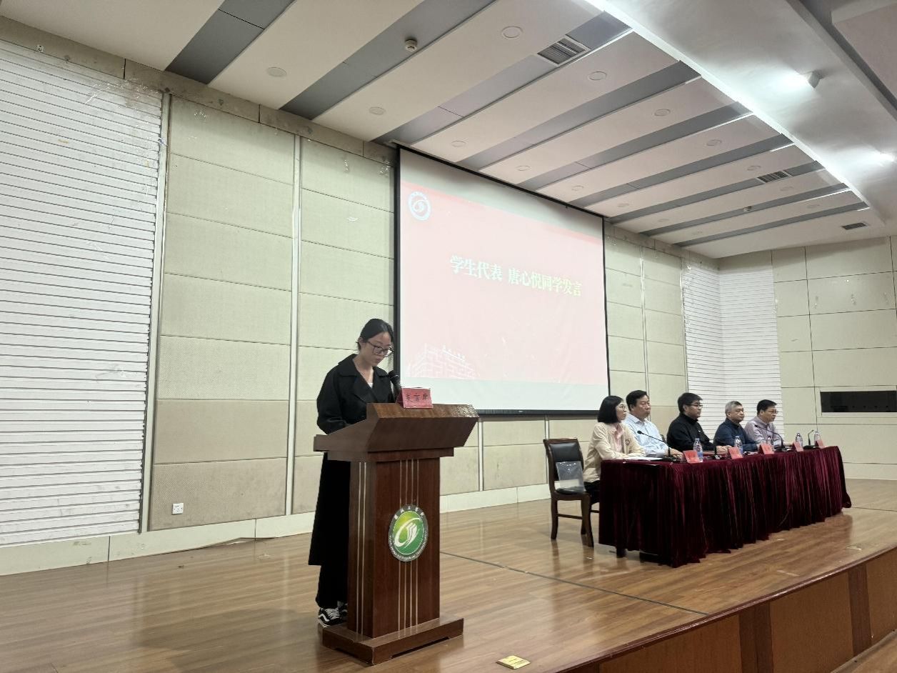 B制药201班许峻源、B应急212班唐心悦分别作为毕业生代表和在校生代表在大会上发言,孙国香教授作为优秀教师代表进行了发言。