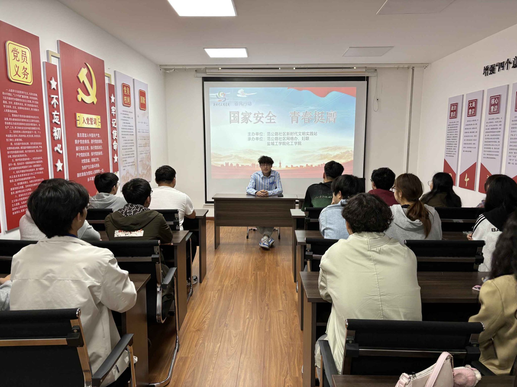 4月24日,学院团委联合范公路社区开展“国家安全·青年挺膺”主题团日活动。范公路社区新时代文明实践站负责人围绕“团员青年如何准确把握国家安全形势的新特点新趋势,增强政治意识、国家安全意识、保守国家秘密意识,提升防范化解重大风险的能力”等,结合典型案例分析,对同学们进行了深入细致地讲解。