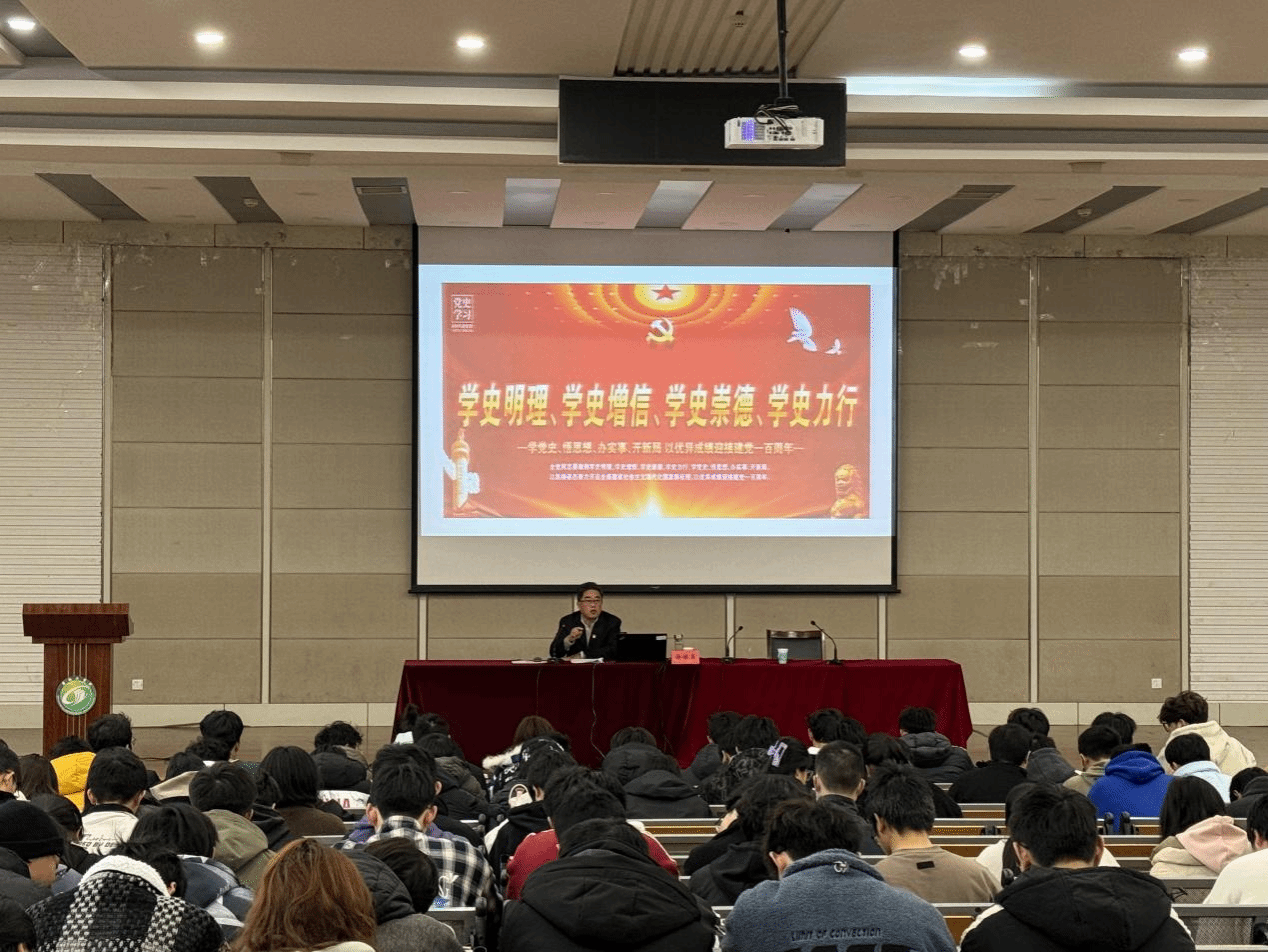 12月6日下午,william威廉亚洲官方邀请校关工委副主任徐报喜在北校区化工楼报告厅为全体大一新生开展“从百年党史中激发信仰汲取力量”专题讲座。公司党委副书记江滔主持,新生辅导员及全体2023级新生参加。