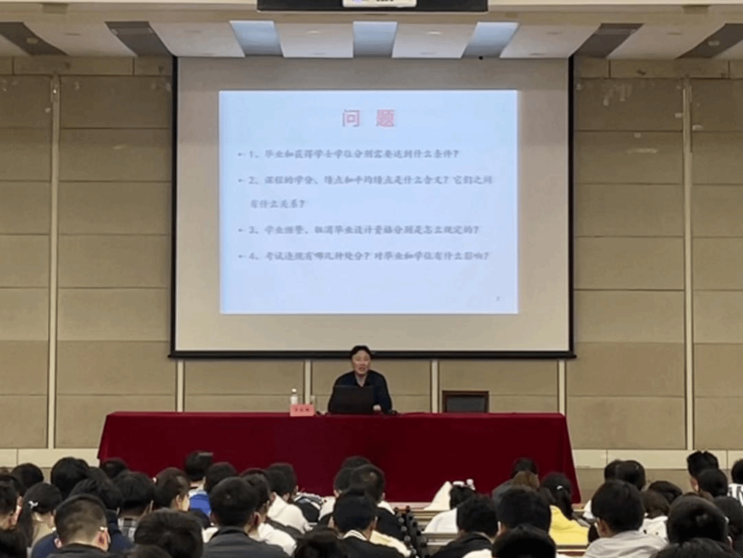 李爱国主要从学籍管理条例、毕业与学位授予条件以及学业预警与考试违纪处理办法,向同学们介绍了课程考试与成绩记载、学分绩点以及少数民族照顾政策等相关内容,并为同学们核算考试作弊需要付出的直接成本和附加成本。李爱国寄语全体员工要诚信应对考试,珍惜大学时光,顺利完成学业。