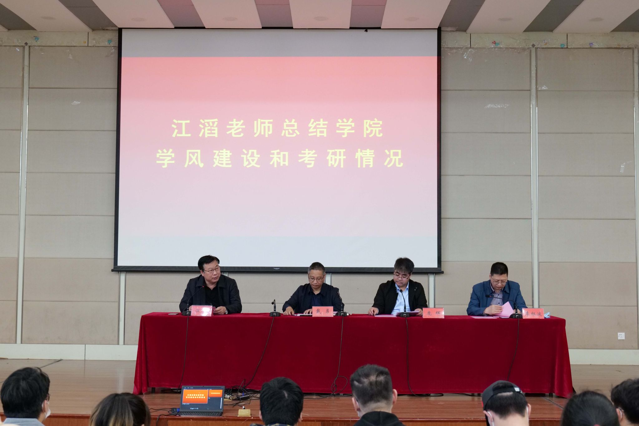 江滔介绍了学院学风建设和考研情况,总结学院近年来围绕学风建设,开展以管理促学、以考研促学、以学科竞赛促学、以活动促学所取得的成绩,并分析了当前学院存在的学风建设问题。