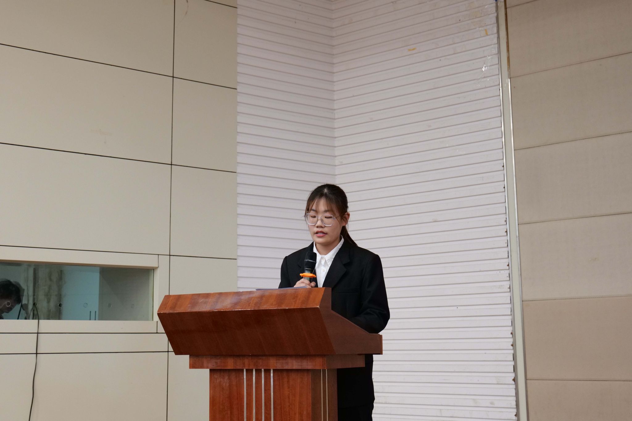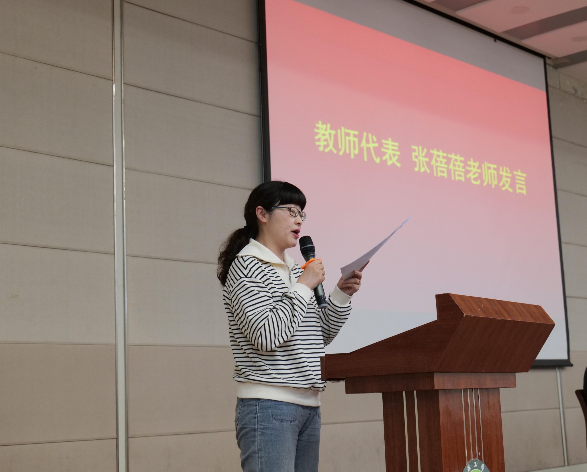 B应化192班郑雪晴、B制药201班刘佳庆分别作为毕业生代表和员工代表在大会上发言。应用化学系主任张蓓蓓作为优秀教师代表进行了发言。