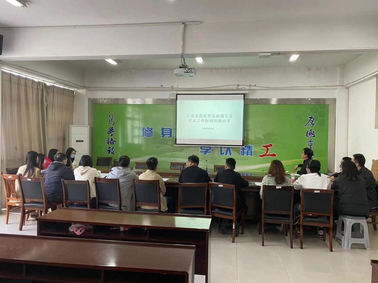 辅导员张师宇结合省毕业班辅导员培训内容,介绍各部委、地方和高校为推动就业做出的一系列助力员工就业的重要举措,从求职市场环境变化、老员工择业观变化、把握校招机会以及多方施策稳就业等四个方面,对学院全体专兼职辅导员进行培训。同时对如何推荐就业信息、制作就业简历、就业面试等环节进行专业化、科学化指导。