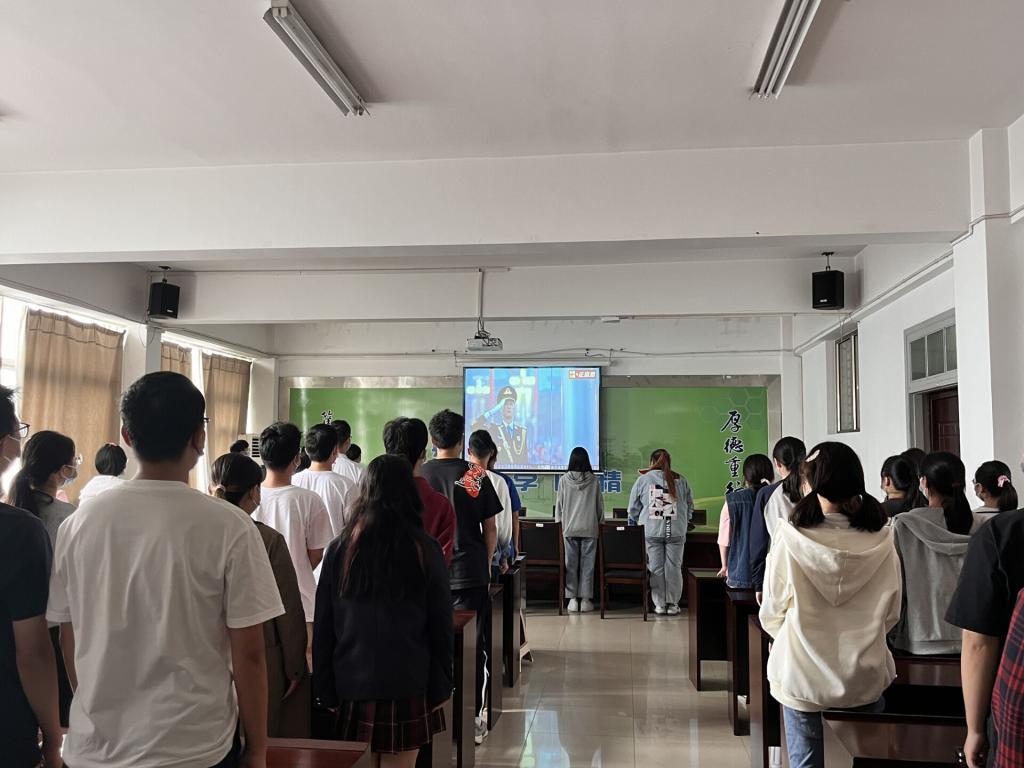 国旗与旭日同升,青春与梦想同行。上午8点30分,学院组织员工在本院201会议室观看天安门升旗仪式直播,同学们一个个坐姿笔挺,聚精会神的注视着屏幕前气势恢宏的天安门广场,透过直播,升旗仪式展现出的不仅是中国军人的风采,更是中国精神。伴随国歌奏起,国旗在同学们的注目礼中冉冉升起,把心中对祖国的满腔祝福伴随国旗升起一同放飞。