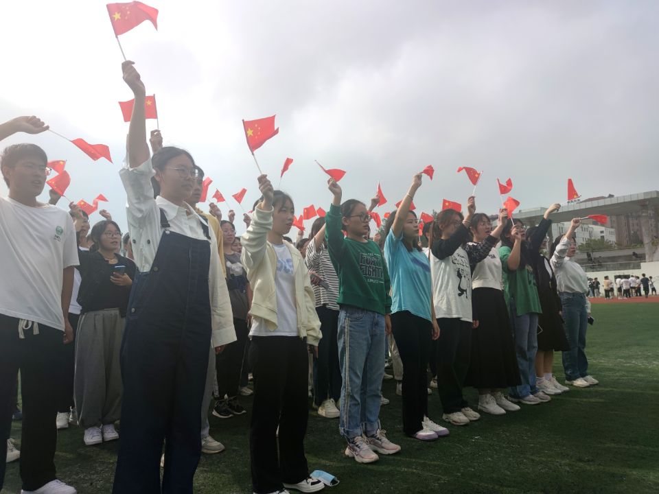 共唱爱国诗歌,弘扬爱国情怀。观看升旗直播后,全体人员移步操场,由院团委员工副书记张艺涵带领大家合唱《我和我的祖国》,“我和我的祖国,一刻也不能分割……” ,同学们挥舞着手中鲜艳的五星红旗,歌声回荡,令人心潮澎湃,火红的国旗与张张笑脸交织在一起,汇成一幅动人的画面,表达对伟大祖国的热爱与祝福。合唱结束后大家用最诚挚的祝福给祖国献礼,祝愿我们的祖国更加美好。丁洁同学感慨道“神州大地繁花似锦,祖国长空乐曲如潮,在这美好日子里,我们最真诚的祝福祖国,繁荣昌盛!”