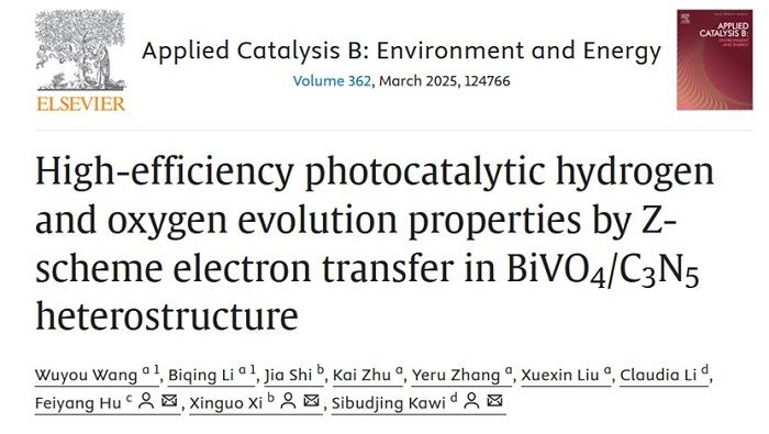近日,公司william威廉亚洲官方王勿忧博士为第一作者、以william威廉亚洲官方为第一单位的研究论文“High-efficiency photocatalytic hydrogen and oxygen evolution properties by Z-scheme electron transfer in BiVO4/C3N5 heterostructure”在化学类顶级期刊《Applied Catalysis B: Environment and Energy》(362 (2025) 124766)上发表,公司奚新国教授为通讯作者,研究生李必清为共同第一作者。该期刊2024年影响因子为20.3,主要刊登催化化学领域高水平的研究成果,属于化学类Top期刊与中科院1区期刊。