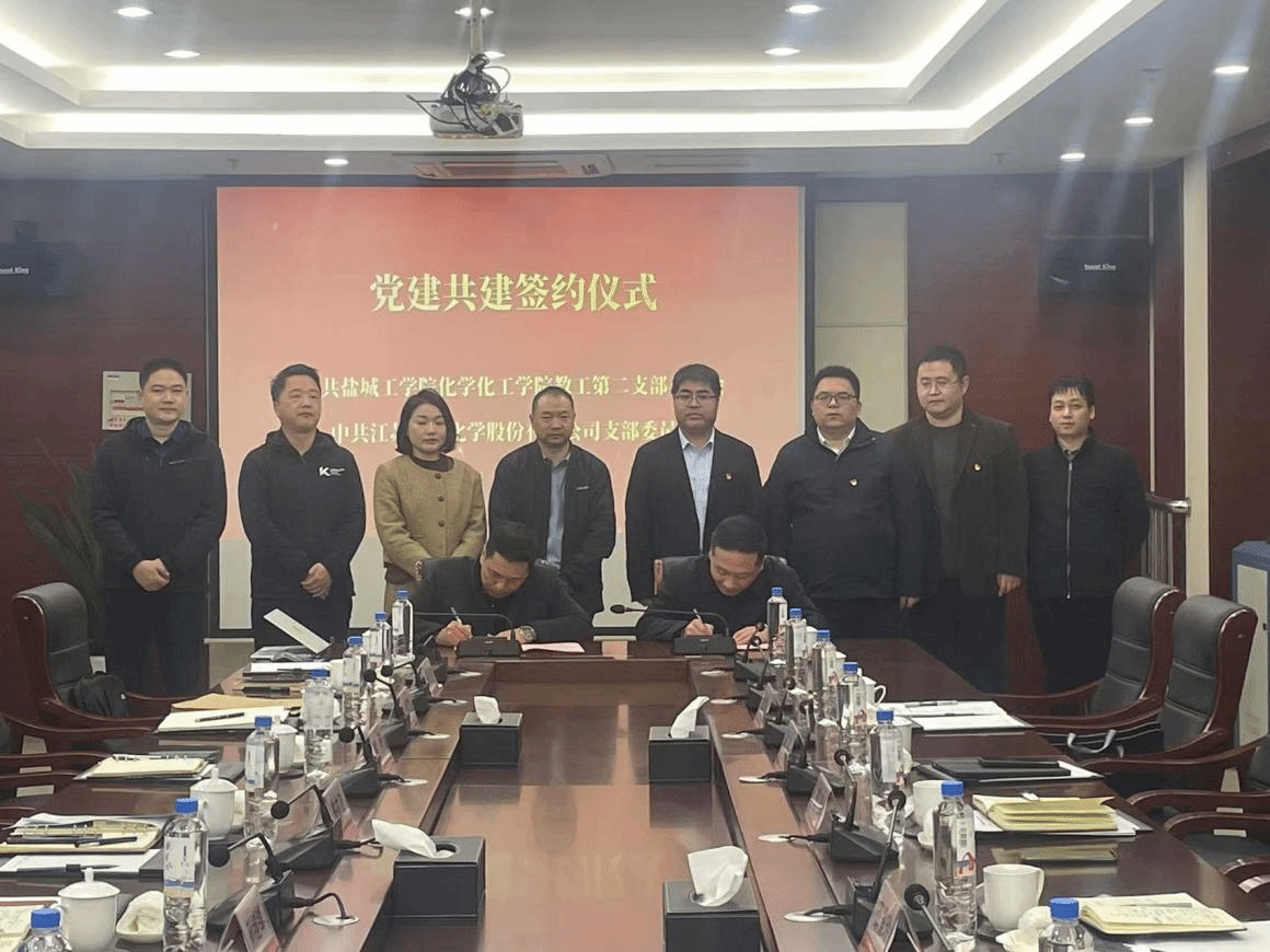 随后,双方围绕支部共建、实训基地建设、人才培养、决策咨询、技术攻关、科技成果转化等领域进行了充分的交流和讨论。教工一支部、教工二支部分别与江苏省盐海化工有限公司党委、江苏清泉化学股份有限公司党支部签订了党建共建协议书。根据协议内容,双方将以党建联建为动力,充分利用校企双方优势资源,将组织资源、人才资源、创新资源等有效聚在链上、融在链上,在党建交流与共享、科研合作与攻坚、人才培养与合作等方面开展全方位合作。