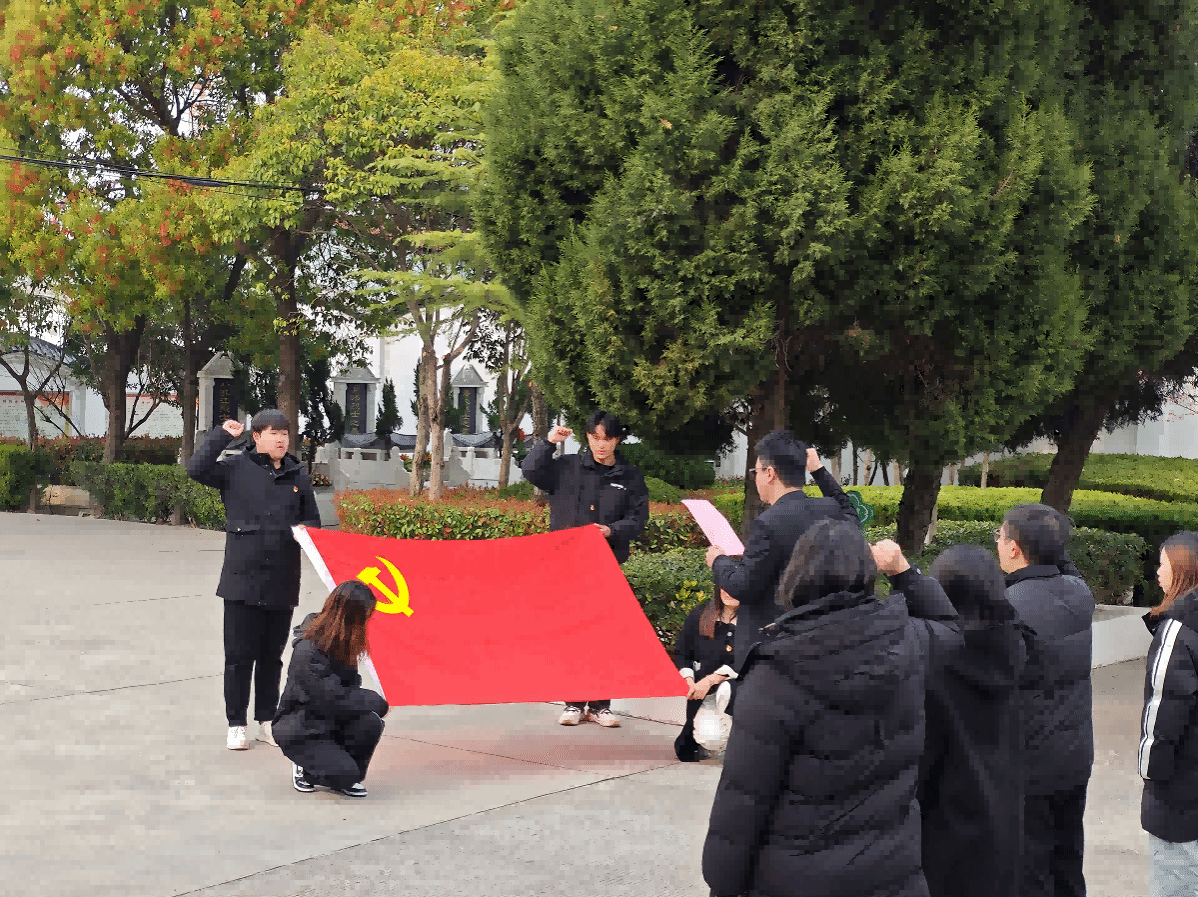 下午3时,全体师生列队肃立于烈士纪念碑前,活动在雄壮的国歌声中拉开序幕。两名员工党员代表缓步上前,向烈士纪念碑敬献花篮,以最庄重的仪式表达对先烈的敬仰。随后,全体师生低头默哀,在静谧的氛围中,每个人心中涌起对革命烈士的追思与敬意。默哀结束,大家向烈士三鞠躬,依次上前瞻仰纪念碑并敬献鲜花,一朵朵鲜花承载着对先烈们的深切缅怀,寄托着对革命先辈的感恩之情。祭扫仪式尾声,员工第二党支部书记曹亚明带领全体党员,面向党旗,重温入党誓词。铿锵誓言回荡在陵园上空,彰显新时代青年党员赓续红色血脉、勇担历史使命的坚定信念。