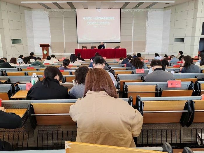 公司实验中心主任冒爱荣从安全责任体系、安全管理制度、安全教育培训、安全能力建设、安全奖惩机制等方面对《教育部关于加强高校实验室安全工作的意见》进行了详细解读。他希望全体老师要进一步提高政治站位,深刻认识实验室安全管理工作的极端重要性,不断强化安全红线意识;要坚持抓源头、抓关键、抓瓶颈,做到底数清、责任明、管理实,有效防范化解实验室安全风险。