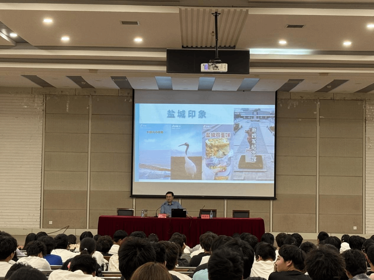 董海龙以“逐光盐阜:解码盐城文化,开启青春新篇”为题为新生们讲授了精彩纷呈的“大学第一课”。他从地理位置、自然资源、经济发展、行政区划等方面介绍了盐城的概况,深入解析了盐城的白色海盐文化、红色革命文化、绿色滩涂文化与蓝色海洋文化等“四色文化”体系。他希望同学们能够将课堂所学与地方所需紧密结合,让青春在奉献与创造中闪光,开启属于自己的青春新篇章。