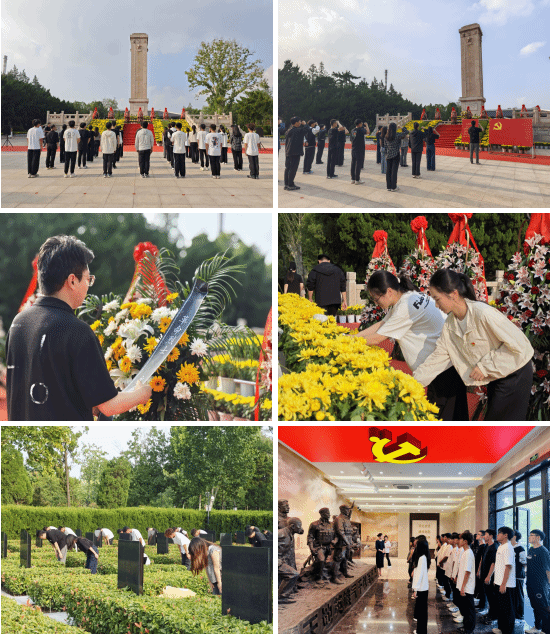 在革命烈士纪念碑前,员工党员们面向鲜红党旗,庄严举起右拳,重温入党誓词。铿锵有力的誓言在陵园内回荡,不仅是对革命先烈的深切告慰,更凝聚起践行初心使命、勇担强国重任的坚定信念。宣誓完毕后,师生们迈着沉重的步伐走向烈士墓区,驻足瞻仰一座座镌刻着英名的墓碑,了解他们的英雄事迹。