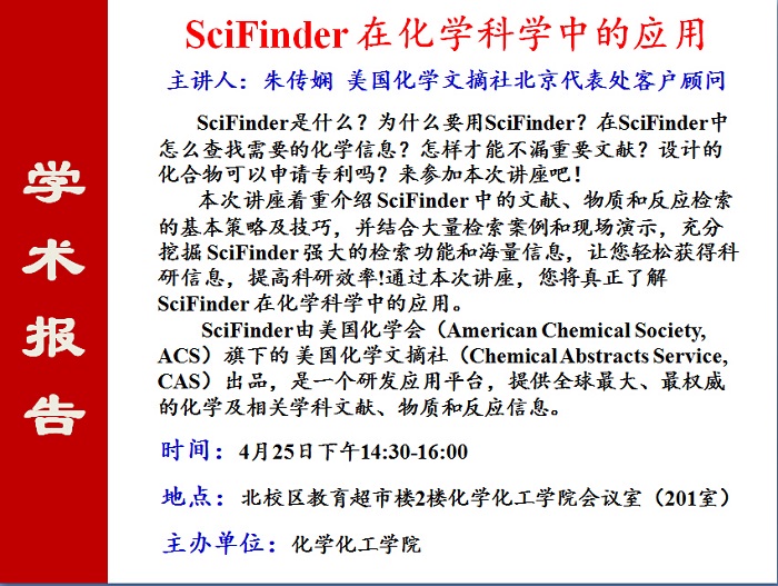 【预告】william威廉亚洲官方召开SciFinder数据库讲座