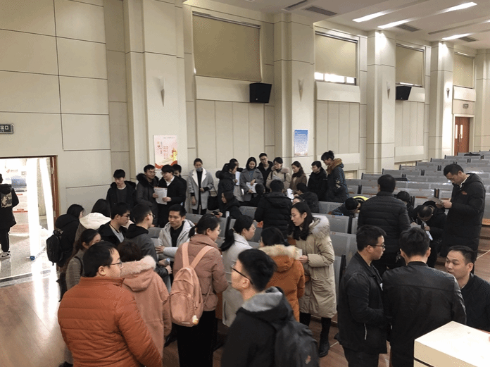 本次招聘会共邀请盛虹石化集团有限公司、药明康德新药开发有限公司、苏州精瑞化学股份有限公司等13家企业前来参会,涉及化工、制药、应化、材料和生物等专业毕业生。招聘会分为招聘单位宣讲、面试、签约等环节。各招聘单位在宣讲时向毕业生着重介绍了企业优势、岗位薪资待遇、职业发展前景。截止晚上八点半,共有80余名员工与参会招聘单位达成就业意向,17人现场签约。