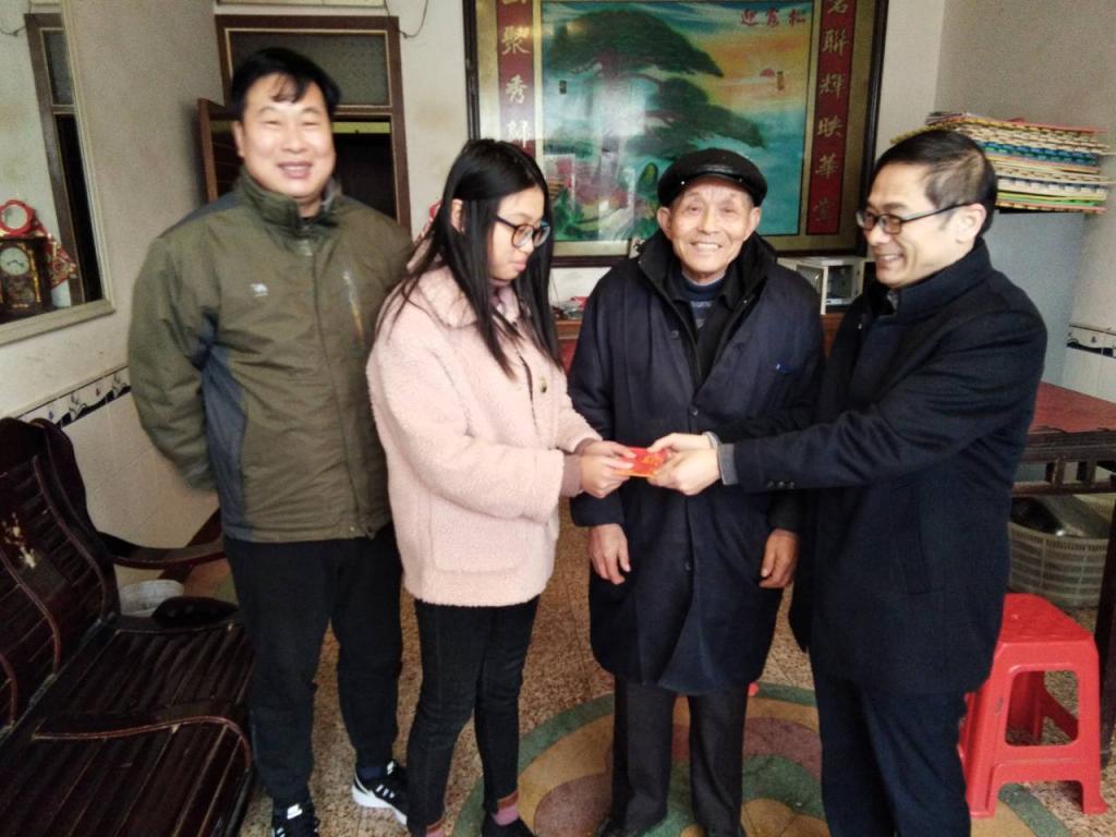 公司领导通过与她爷爷的交流,深入了解了他们家庭的生活情况和存在的具体困难,鼓励骆玉婷同学在学校刻苦学习,自立自强,通过学校和社会各方的关心帮助,战胜暂时的困难,将来回报社会和家庭。最后,谢书记代表学院向他们送上慰问金并致以新年的祝福!