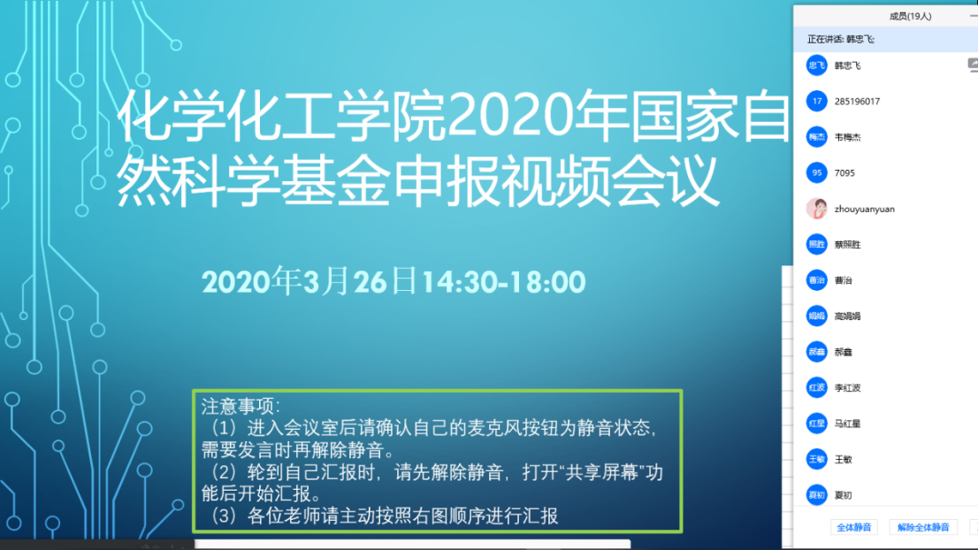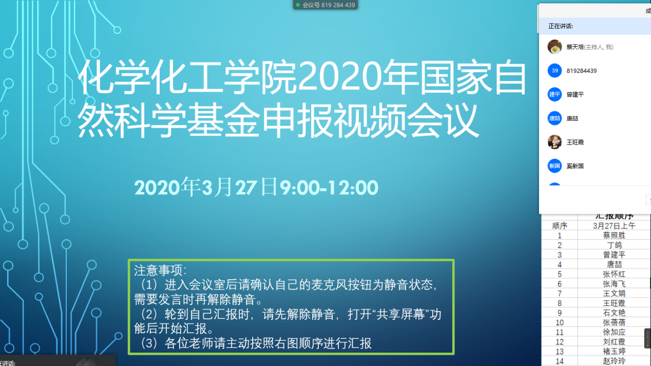 3月26日下午和3月27日上午,william威廉亚洲官方利用“腾讯会议”平台组织召开了2020年国家自然科学基金申报视频汇报会。william威廉亚洲官方经理奚新国和公司李红波教授出席会议,学院2020年度申请国家自然科学基金的各位老师参会。学院副经理戴勇主持会议。