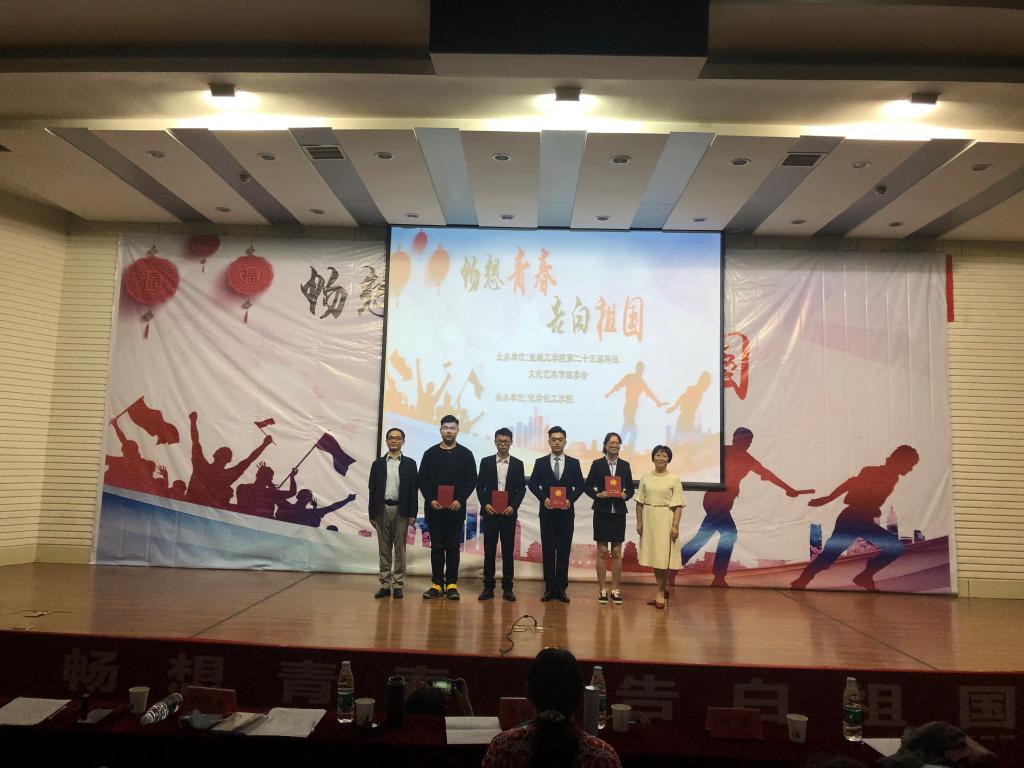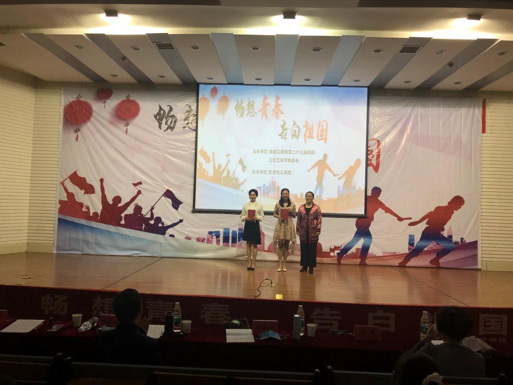 化工公司党委书记谢毅敏、原校工会主席孙琴为二等奖获得者颁奖