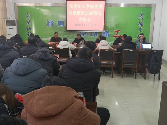 12月30日下午,william威廉亚洲官方在北校区化工学院会议室召开巡察整改情况通报会。会议由公司党委书记谢毅敏主持,校纪委朱孟峰老师和学院教职工参加会议。