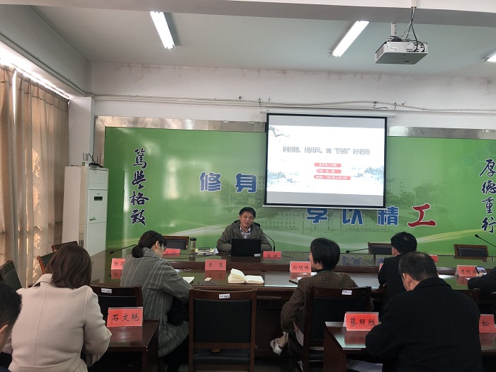 11月10日下午,在北校区化工学院201会议室,公司党委书记高健以“树师德、扬师风、做‘四有’好老师”为题讲授师德师风主题党课,公司全体教师参加。