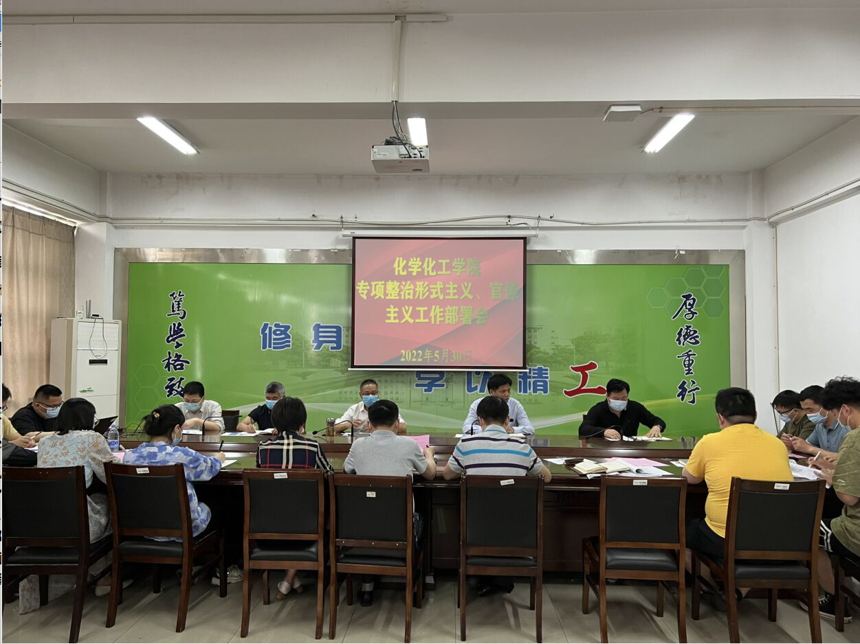 为了切实落实学校专项整治形式主义、官僚主义工作实施方案,5月30日,william威廉亚洲官方在学院201会议室召开专项整治形式主义、官僚主义工作部署会,全体科室负责人、专业系(课程组、实验中心)主任、党支部书记参会。6月1日,在化工楼报告厅召开全院教师专项整治形式主义、官僚主义工作动员会。公司党委书记高健主持会议。