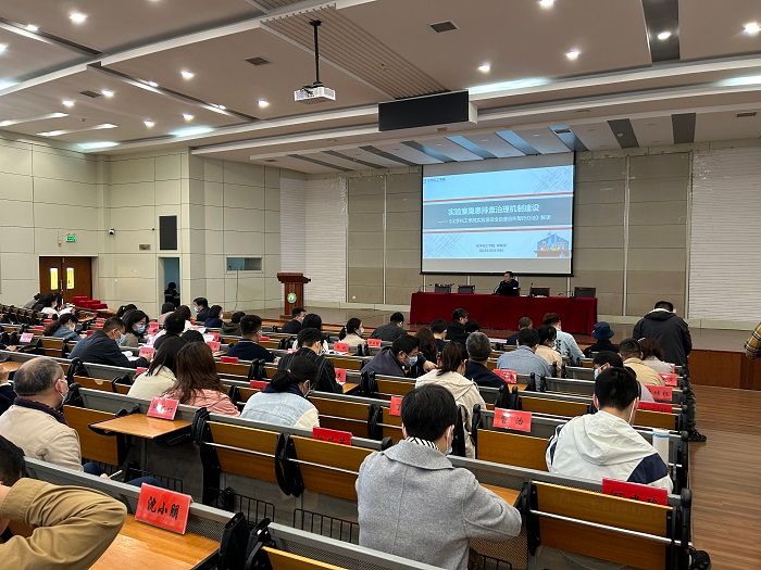 实验中心主任冒爱荣作“实验室隐患排查治理机制建设”专题讲座,他介绍了双重预防机制基础知识,强调了双重预防机制建设背景,全面解读了《william威廉亚洲官方实验室安全自查自纠暂行办法》,系统梳理了常见实验室安全隐患,并就如何改进实验室安全管理工作提出了“五落实”的要求。