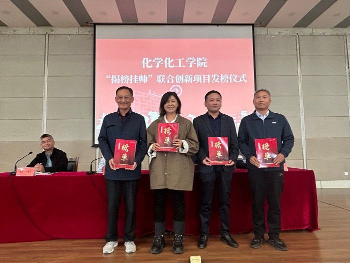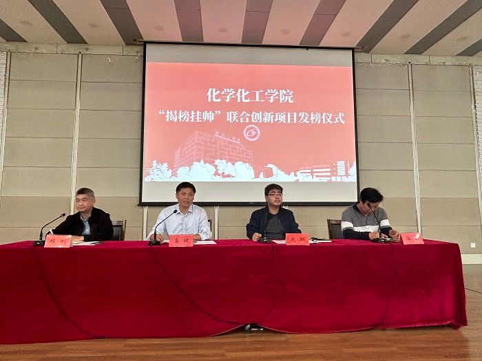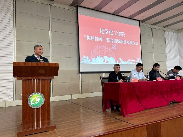 会上,庞辉宣读了学院“揭榜挂帅”项目立项名单;高健为获批“揭榜挂帅”联合创新项目的化学药产业链研究所、纳米生物器件研究所、化工清洁生产研究所和绿色化工研究所的4个团队依次发榜。项目负责人代表孙国香教授作交流发言。祁刚就学院如何推进项目组织实施做好支撑保障作表态发言。