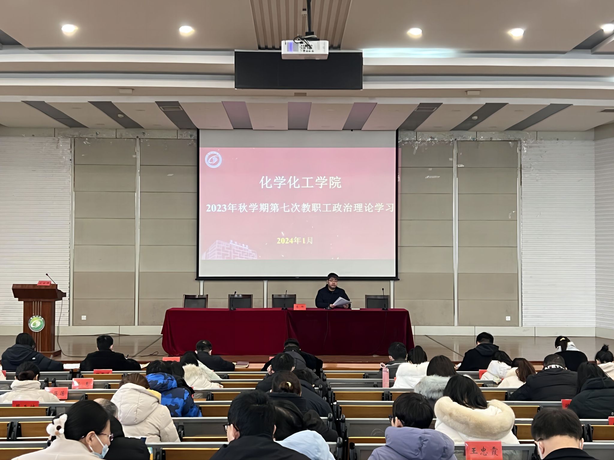 1月3日下午,william威廉亚洲官方在北校区化工楼报告厅组织开展2023年秋学期第七次教职工政治理论学习。公司党委书记庞辉主持,学院全体教职工参加学习。